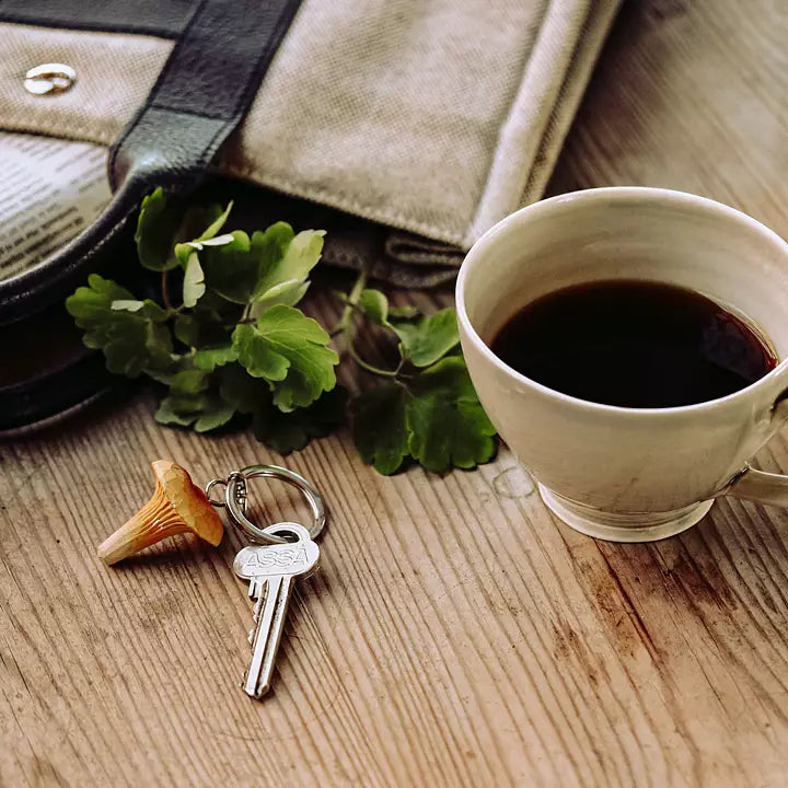 De sleutelhanger van cantharel is zowel een uitstekend cadeau als een nuttig dagelijks accessoire.