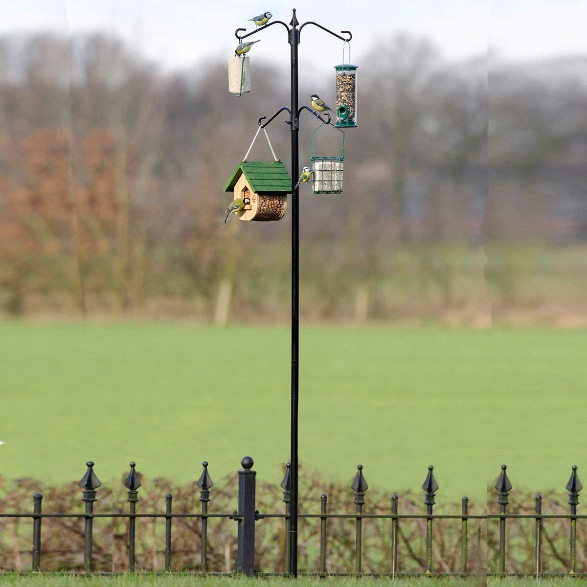 Met deze voederpaal kun je gemakkelijk een station creëren waar diverse vogels kunnen genieten van diverse voedingen. Je kan er eenvoudig mezenbollen of pindanetjes aan hangen, maar het is ook geschikt om diverse silo's op te hangen.