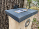 KOOPRIJK - Pimpelmees nestkast In deze fraaie roofvogel bestendige nestkast zal vooral de pimpelmees zich thuisvoelen vanwege de 29mm vliegopening, de kans is groot dat er ook een kuifmees, de glanskop, de zwarte mees en de zwartkop de kast aantrekkelijk vinden om in te nestellen. Wist u dat vogels ook vaak overwinteren in nestkasten? Vervaardigd uit massief hoogwaardig douglas hout, gelakt waterdicht dakje en voorzien van een anti roofvogel invliegring spechten willen de opening van een nestkast nog wel eens groter maken om toegang te verschaffen. Deze invliegring en de scharnieren van deze kast zijn uit RVS roest vrij staal vervaardigd zodat deze ook na meerdere jaren geen roest vertoont. Plaatsing: Op minimaal 1,8 m van de grond af ophangen en minimaal 10 meter van eenzelfde soort nestkast ophangen. Niet in volle zon ophangen en bij voorkeur aan noordzijde van een boom i.v.m. regen. Nestkast in de herfst met warm water en borstel schoonmaken i.v.m. mogelijke parasieten. U draait de schroef met de metalen voet op de bovenzijde van de deksel eruit en klapt de deksel open door middel van de twee scharnieren. De nestkasten uit de KOOPRIJK serie zijn met liefde handgemaakt en een eerlijk oer-achterhoeks product. Gebouwd van hoogwaardig kwalitatief hout, geschroeft in plaats van geniet waardoor deze nestkast niet na één jaar zichzelf tot een insectenhotel omtoveren op de grond. Geinteresseerd naar de andere typen kasten uit de KOOPRIJK serie? Let op de grijze dakjes en het unieke brandmerk.