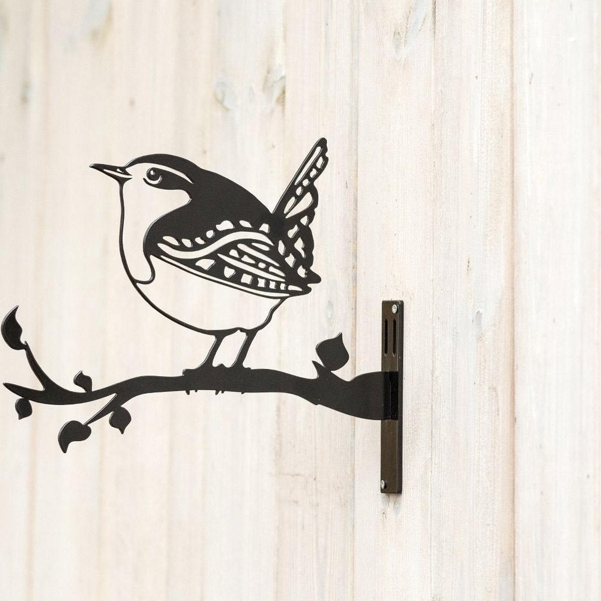 Versier uw tuin met deze metalen Winterkoning. Hang hem op aan een boom of bij de deur. U kunt er ook een saaie schutting mee opfleuren. Gemaakt van metaal, afgewerkt met een poedercoating en een zwarte laklaag.