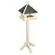 Robuuste simpele houten meubels en accessoires vormden jarenlang de entourage in de keuken en het leefgedeelte op boerderijen. Het kwalitatief hoogstaande hout zorgt voor een mooie afwerking en stabiliteit. Deze voedertafel met landelijke uitstraling biedt vogels een fijne voederplaats. Door de open structuur kunnen de vogels van alle kanten aanvliegen, en zo plaatsnemen op het voederplateau. Het bitumen dak zorgt ervoor dat het voer droog blijft. Met de vierpotige voet heeft de voedertafel op elke ondergrond een goede stabiliteit.