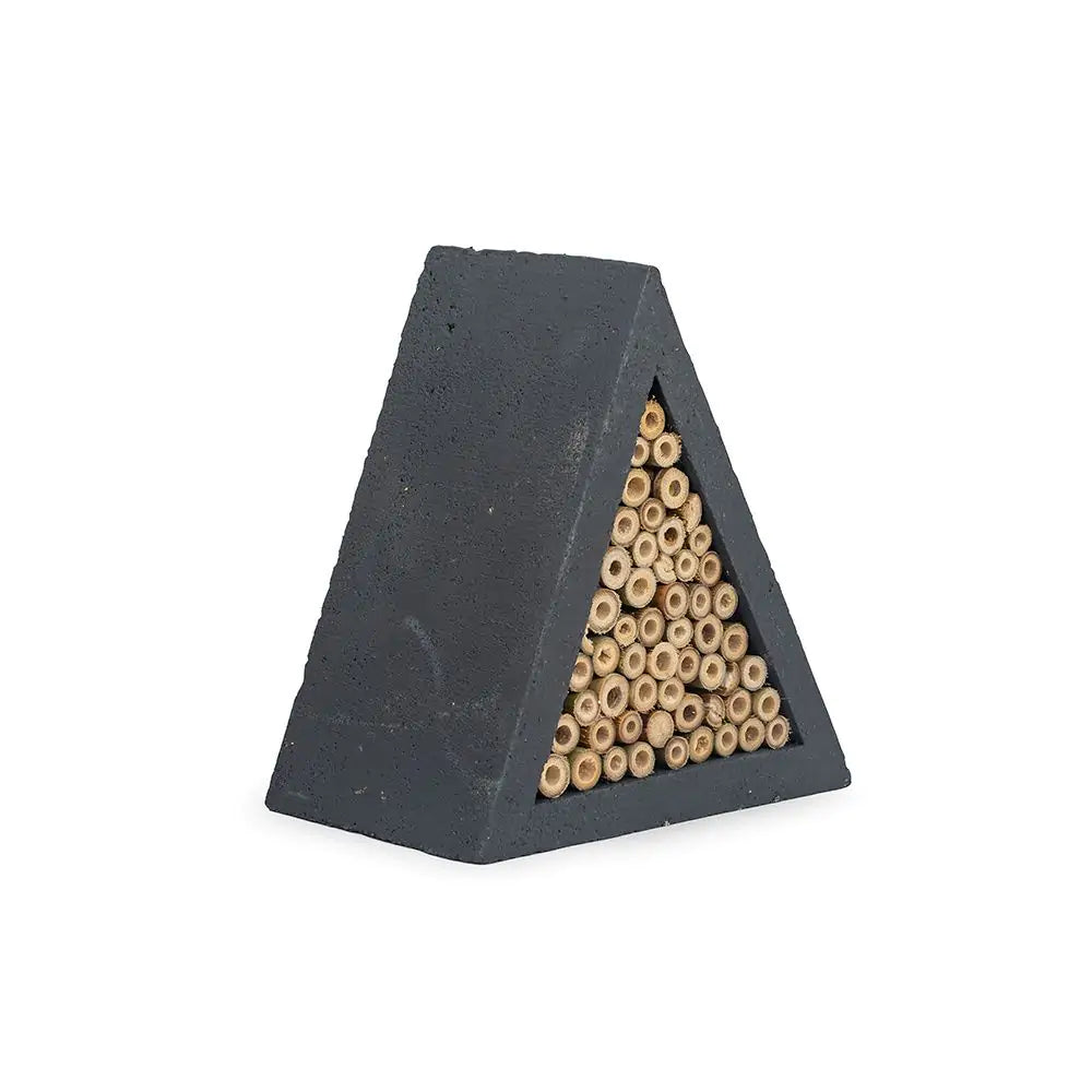 Het Culebra insectenhotel helpt bijen aan een nestgelegenheid. Aangezien de bijenstand al jarenlang terugloopt is het belangrijk om ze te helpen door een insectenhotel op te hangen. Het triangelvormige huis is gemaakt van WoodStone; een mengels van houtvezel en beton. Deze combinatie garandeert een lange levensduur. Het bamboe binnenwerk is na verloop van tijd vervangbaar. Zo kunnen insecten zich er weer opnieuw in nestelen.