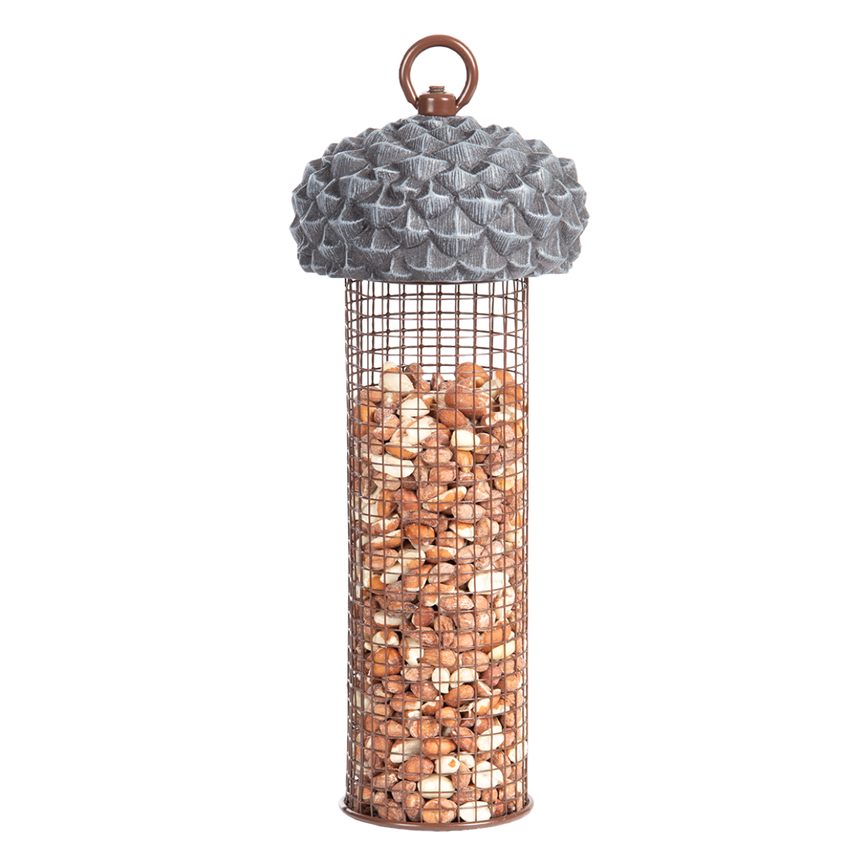 Deze eikelsilo is gemakkelijk na te vullen. Door de ring los te draaien kan het deksel verwijderd worden. open structuur, makkelijk toegankelijk gemakkelijk na te vullen deksel in de vorm van een eikeldopje