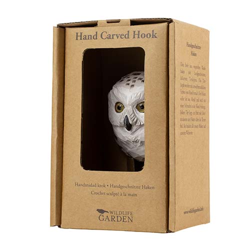 Houtsnijwerk Sneeuwuil met Bronskleurige Haak