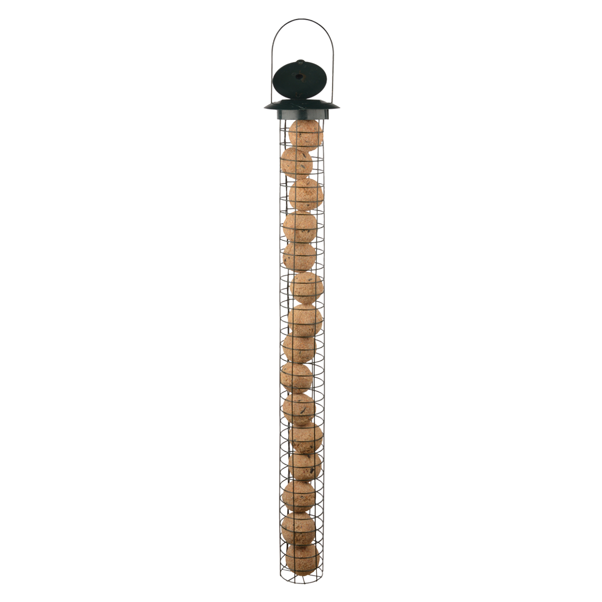 Deze vetbollenautomaat XL van het merk Esschert Design is gemaakt van gepoedercoat staal en is groen van kleur. In deze vetbollensilo is ruimte voor maar liefst 15 vetbollen. Zo hoeft u dus niet continu vetbollen bij te vullen maar kunt u lekker genieten van de smullende tuinvogels!