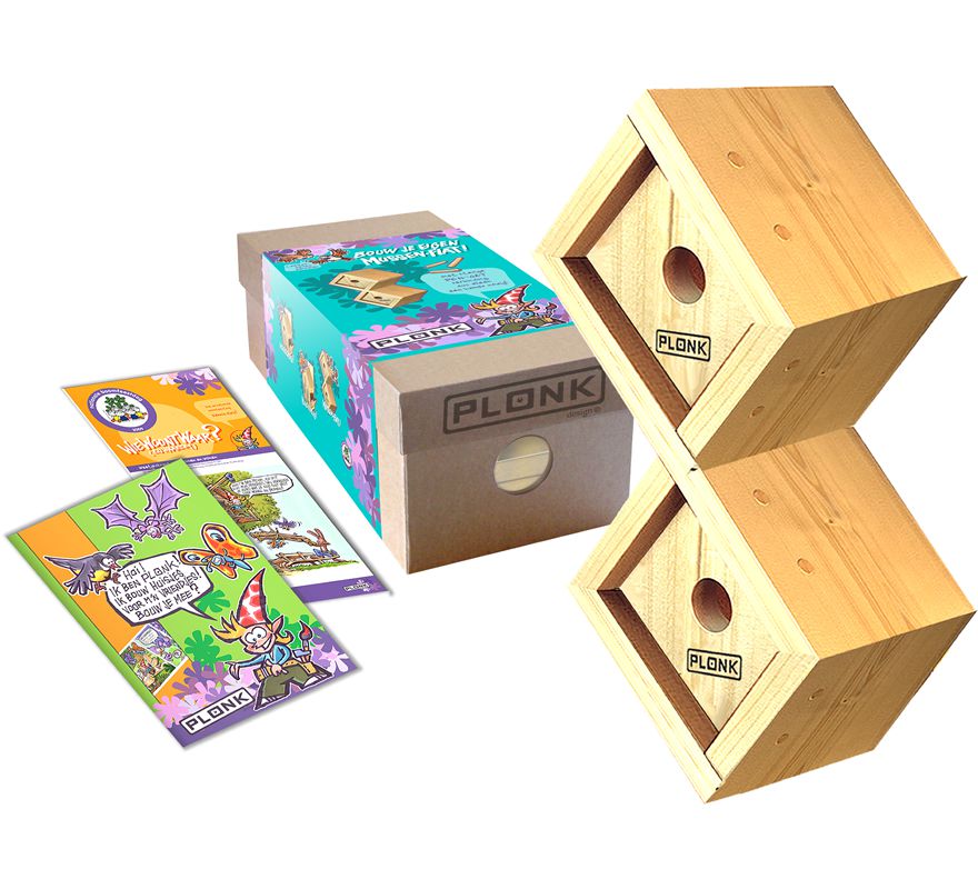 Dit Bouw je eigen mussenflat van Plonk Design is een ontzettend leuk vogelhuisje! De mussenflat is speciaal ontworpen voor kinderen om eenvoudig zelf in elkaar te kunnen zetten. U betrekt uw kleinkind dus in de tuin en op een speelse wijze leren ze meer over de natuur. Het materiaal waarvan de mussenflat is gemaakt is FSC-gecertificeerd hout. De onderdelen van de mussenflat zijn zo gevormd dat het monteren erg gemakkelijk gaat met of zonder hamer met de houten pen-verbindingen en de voorgeboorde gaten. Lijmen is niet nodig. Het hout van de mussenflat is onbehandeld en dat kan prima zo blijven maar het is natuurlijk extra leuk als uw kleinkind er een eigen vrolijke sfeer aan kan geven d.m.v. verf of stiften. Uw kleinkind zal er veel plezier aan beleven en trots zijn op zijn/haar eigen mussenflat!Deze vogelhuisjes zullen gedurende het gehele jaar gebruikt worden door mussen, in het voorjaar zal de mussenflat als broedplaats dienen en in de herfst/winter als schuilplaats. Als mussen eenmaal een plek hebben uitgekozen blijft dit vaak hun verblijfplaats, vertrekken doen ze niet snel. Omdat de mussen hetzelfde nest houden is het dus niet nodig de mussenflat in de herfst schoon te maken. Om het de mussen wat gemakkelijker te maken gedurende de koudere en de erg warme perioden raden wij het u aan de mussen een waterplek en wat voer aan te bieden.De mussenflat is moeiteloos te monteren aan muur, schutting of boom door de twee gaatjes in de achterzijde van de mussenflat. Wij raden u aan de mussenflat circa 1,8 meter van de grond en niet in de felle zon te bevestigen.Waarschuwing: niet geschikt voor kinderen onder de 3 jaar en alleen onder toezicht van een volwassene in elkaar zetten. Gebruikersvoordelen: Speciaal ontworpen voor kinderen FSC-gecertificeerd hout Aantrekken en behouden van de mus in uw tuin Eenvoudig te bevestigen Technische gegevens: Merk Plonk Design Materiaal FSC-gecertificeerd hout Afmetingen 14cm. lengte x 48cm. hoogte x 25cm. breedte Kleur hout Bevestigingsmateriaal inbegrepen ja, pen-verbindingen