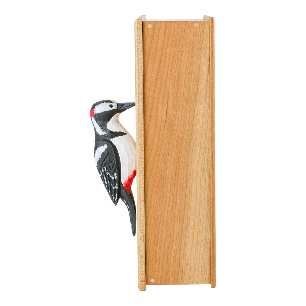 Handgemaakte sleutelkast van kersenhout met een handgesneden vogel