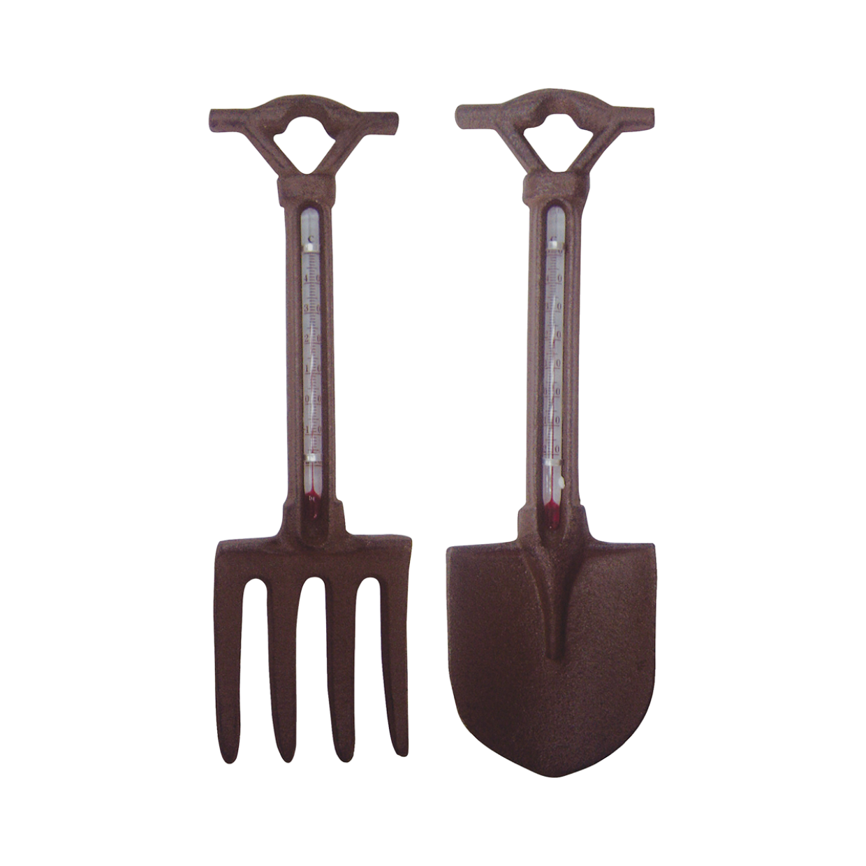 Tuingereedschap mag in geen enkele tuin ontbreken. Deze spade en greep geven ook de temperatuur weer van -20° tot +50° celsius. Deze decoratief gietijzeren gereedschappen zijn per stuk met de hand gegoten volgens eeuwenoud vakmanschap en traditie.