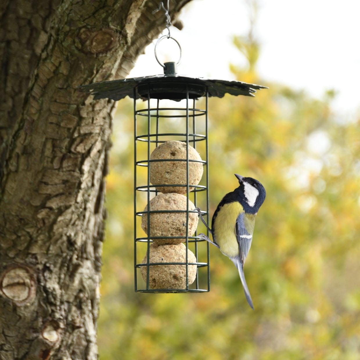 Deze vetbollenautomaat met bladerdak is gemakkelijk na te vullen. Door de ring los te draaien kan het deksel verwijderd worden. open structuur, makkelijk toegankelijk gemakkelijk na te vullen deksel in de vorm van bladeren