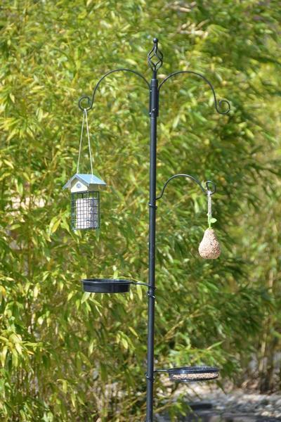 Het ultieme alles-in-een voeder-, water- en badstation voor tuinvogels. Dit praktische en decoratieve station is eenvoudig in elkaar te zetten en is ideaal voor in elke tuin. Aan de verschillende haken kunnen diverse voederartikelen worden opgehangen. Daarnaast kunnen de bijgeleverde schalen gevuld worden met water of zaad.• set bestaande uit 3-delige stang, dubbele haak, enkele haak, waterschaal en voederschaal• eenvoudig te monteren• k/d verpakt in giftbox ProductspecificatiesMateriaal: MetaalFormaat: 51,5x18,3x200,5 cm
