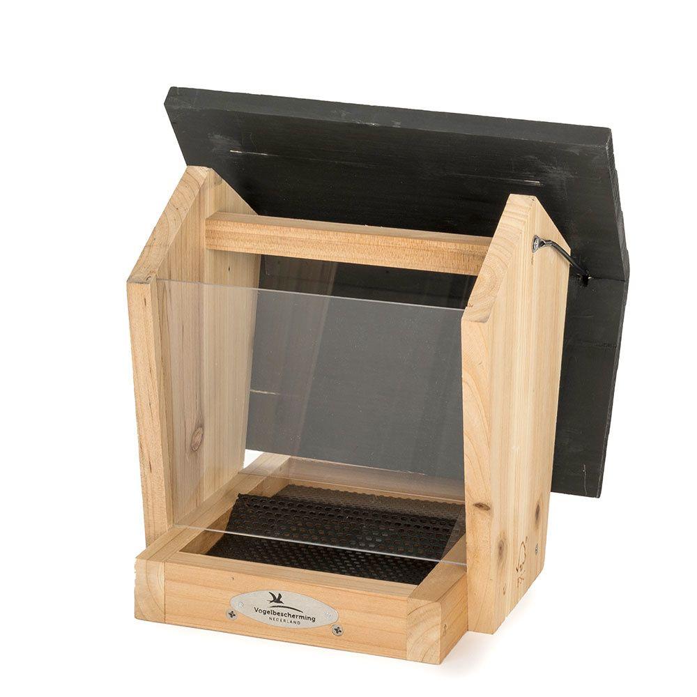 Door de plexiglazen zijwanden ziet u precies wanneer het voederhuis bijgevuld moet worden.